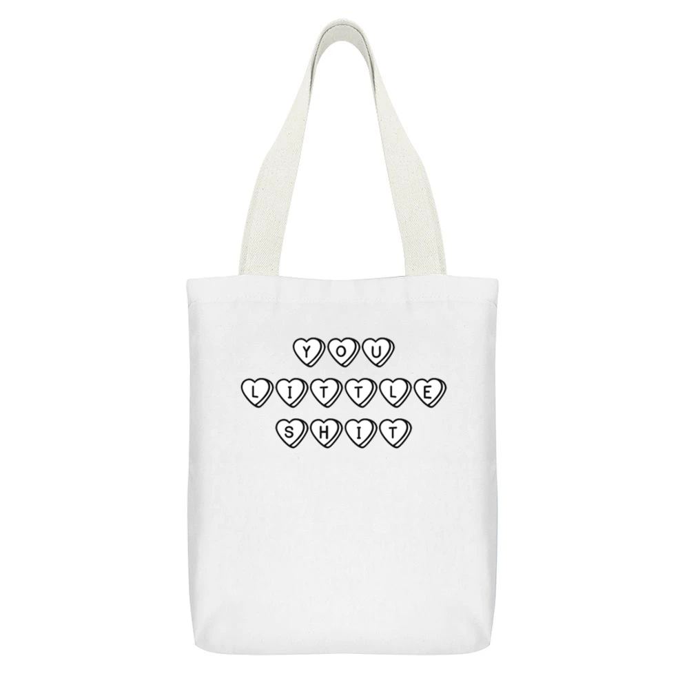 Both the You Little Shit Cute Hearts Graphic Tee Shirt and the Canvas Tote Bag are perfect for gifting. Surprise your friends or loved ones with this charming combo for birthdays, holidays, or just because. They will appreciate the thoughtfulness, and you get to share a good laugh along with a stylish gift!